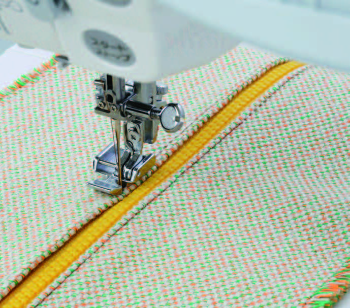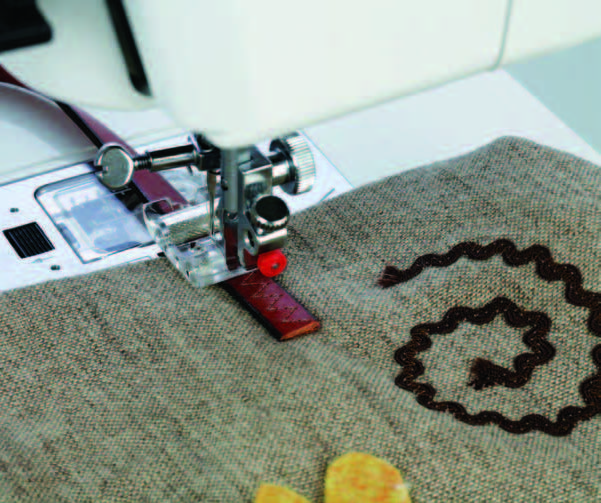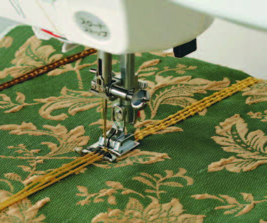 Patka pro našívání až tří šňůrek. Štěrbiny v této patce přidržují jednu až tři šňůrky při jejich přišívání ozdobnými stehy. Trojcestná patka vede jednu, dvě nebo tři šňůrky. Jelikož jsou šňůrky upevněny do patky, můžeme snadno šít požadované tvary a šňůrky budou dokonale umístěny. K našívání šňůrek na látku můžete použít celou řadu základních i ozdobných stehů. Konečnému efektu přispěje volba šňůrek, nití i stehu.