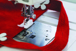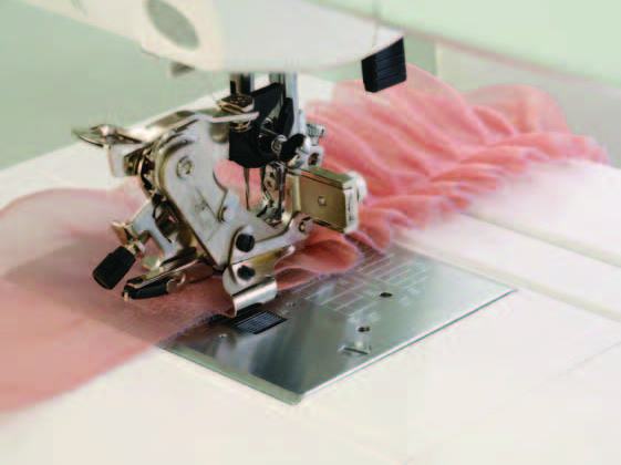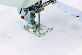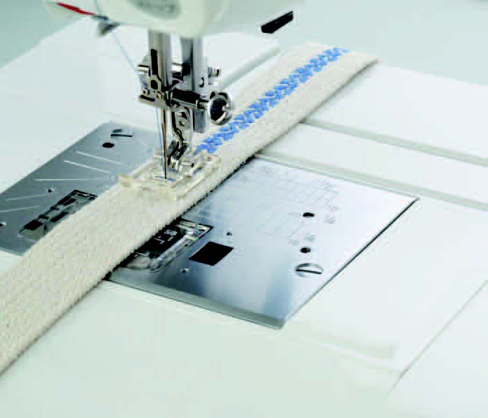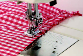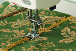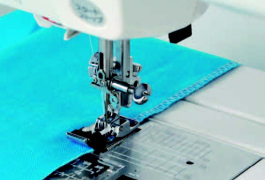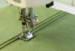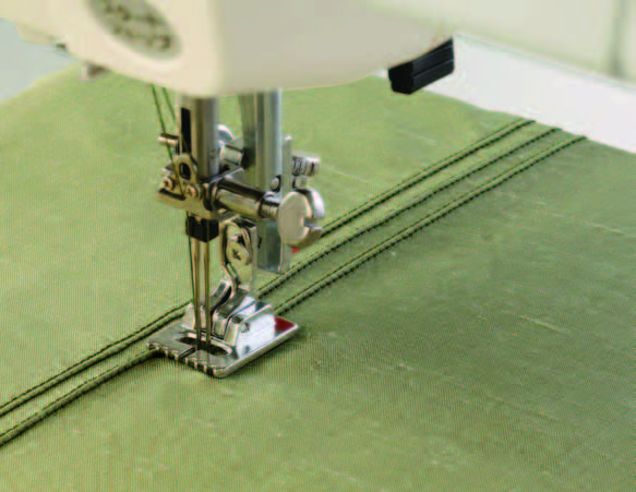Delikátní sámky dvojjehlou jsou s patkou opatřenou vespod drážkami jednoduché jako vánek. Sámky nejsou pouze ozdobou, ale jsou-li strategicky umístěny, dodávají na tenkých látkách dojem štíhlosti. Sámkovací patka se používá s dvojjehlou 2 mm k vytvoření několika řad sámků. Drážky vespod na patce usnadňují ušití několika rovnoběžných řad s dodržením stále stejné vzdálenosti. Dodejte tenkým látkám stínový efekt použitím tmavě zbarveného vyšívacího hedvábí.