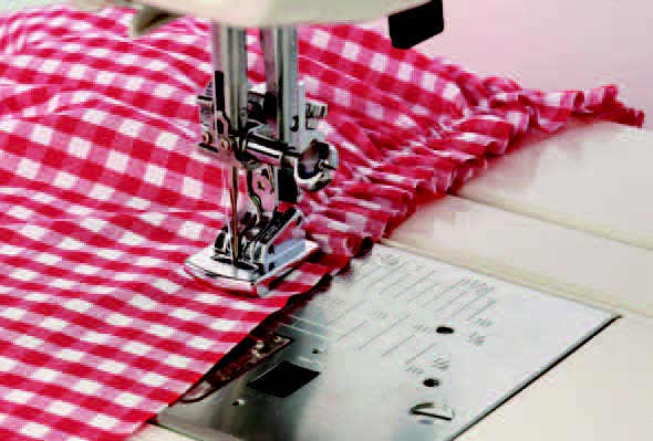 Používá se pro rychlé vytvoření jemného nařasení tenkých látek, velikost nařasení je dána tloušťkou látky, délkou stehu a napětím horní nitě. Spodní plocha patky je za jehlou zvýšena a před jehlou je silný profil, pro zřasení látky a jejího našití na rovnou látku v jednom kroku. K dosažení výraznějšího nařasení použijte řasící aparát.